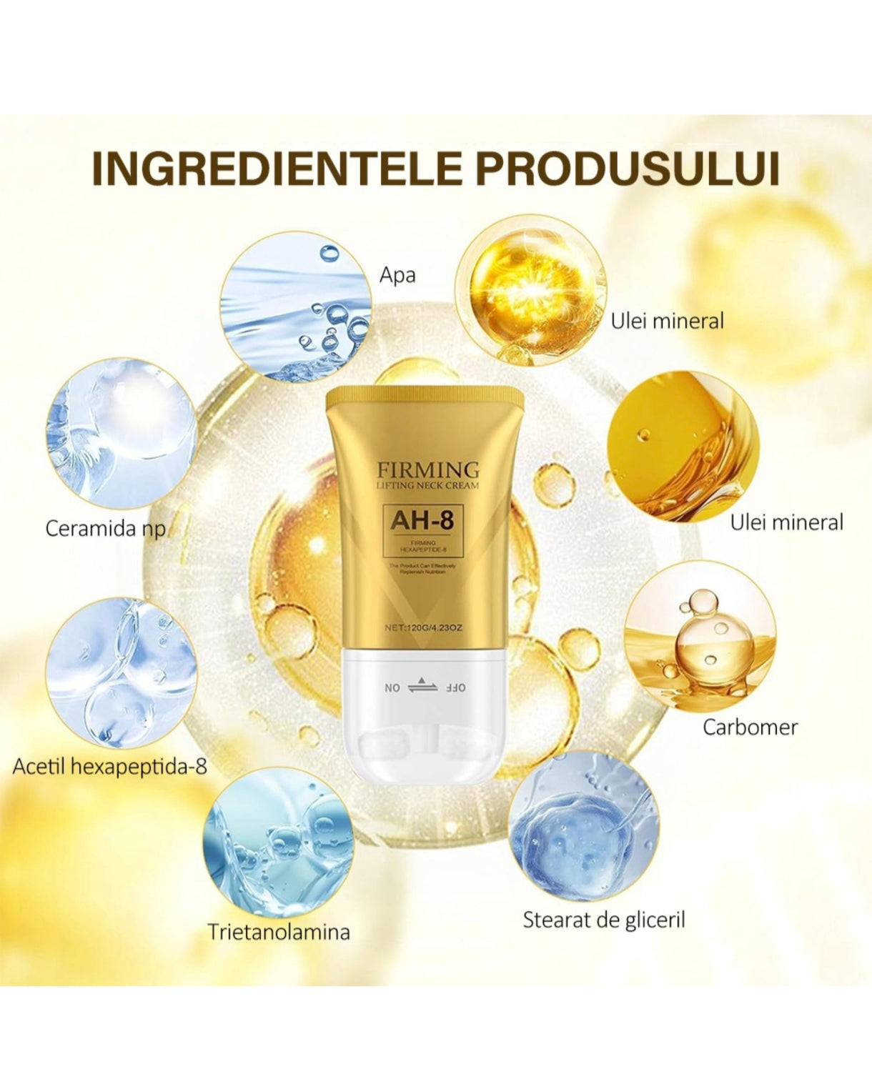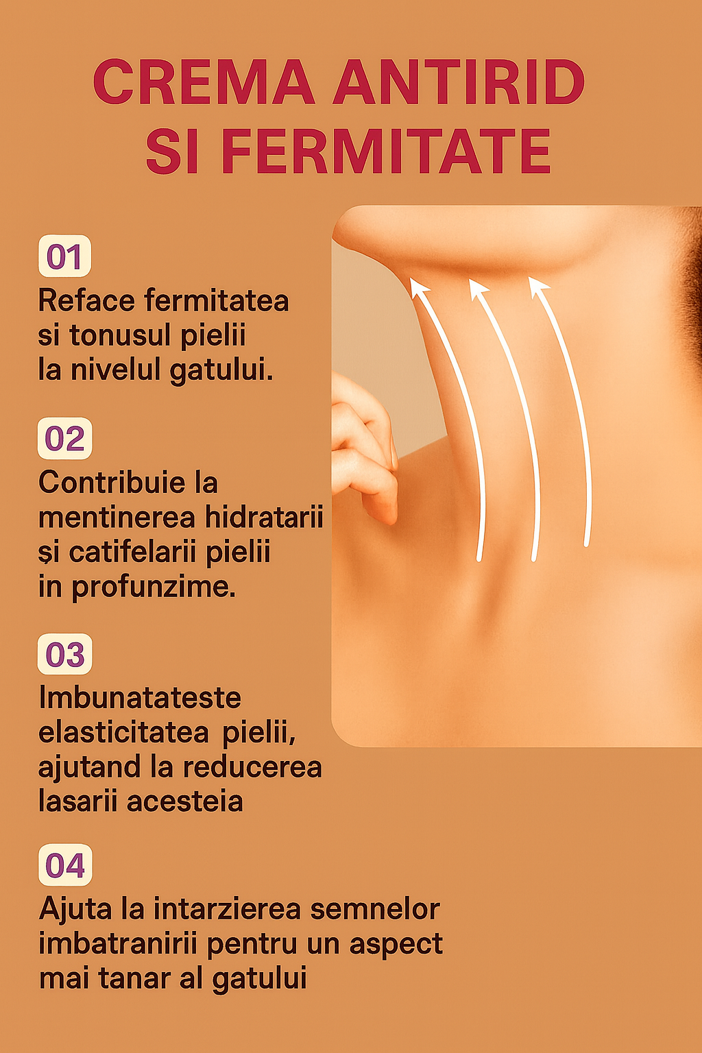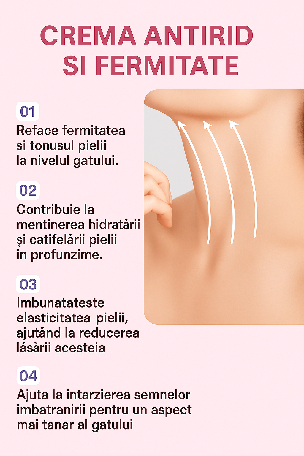 Această cremă nu doar hidratează în profunzime, ci acționează precis asupra zonei gâtului – acolo unde pielea este subțire, delicată și predispusă la pierderea elasticității.